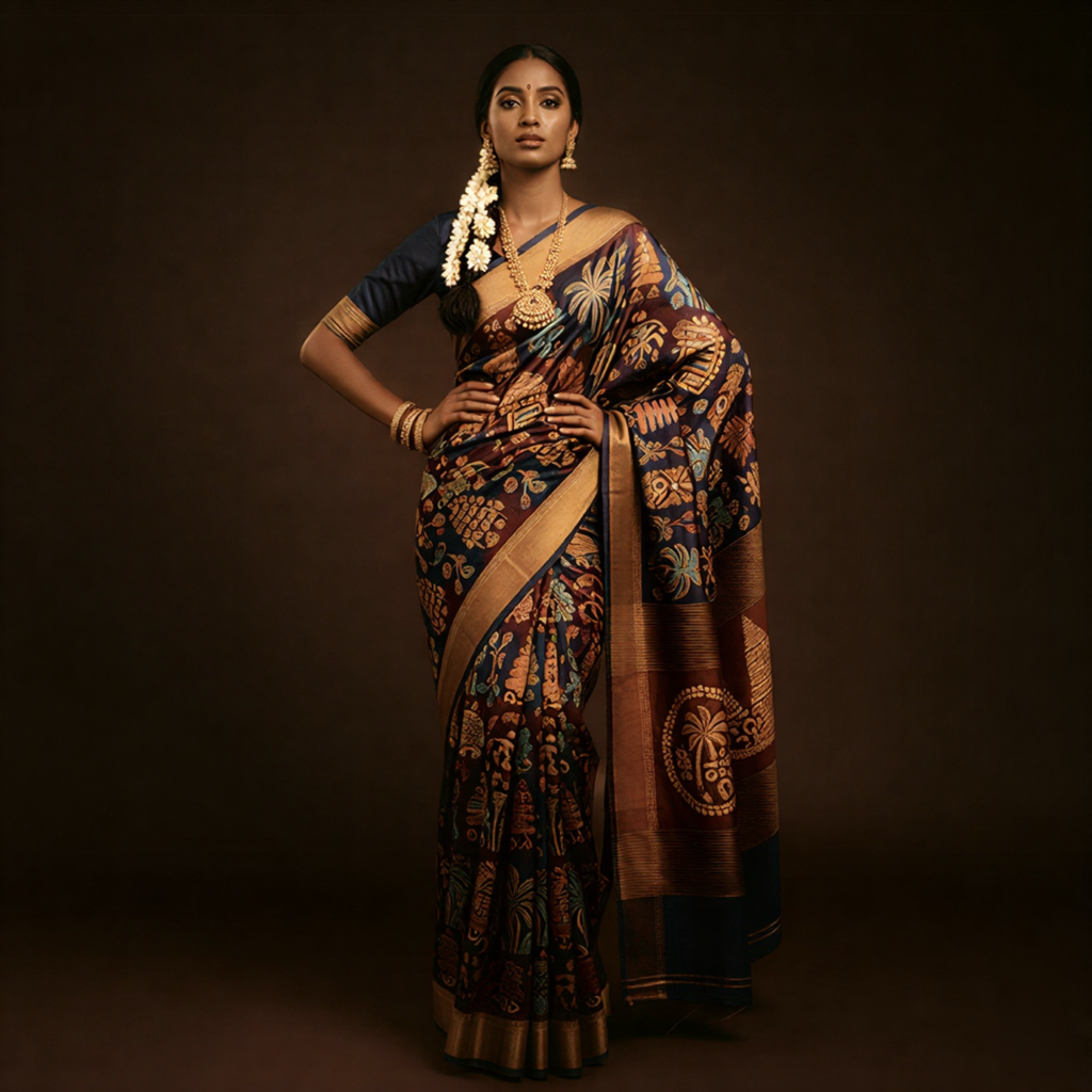 Artistic Fusion: A rare blend of Handloom, Batik, and Hand-Embroidery.